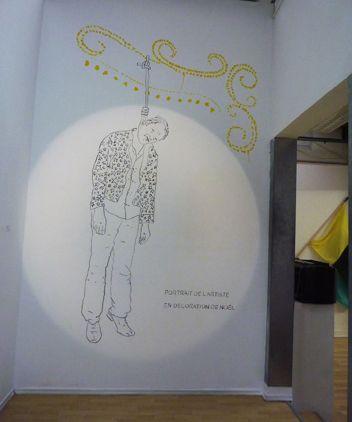 Portrait de l'artiste en décoration de Noël 2008 - Fusain et huile sur mur Voir dans Vues d'expo we Like Rodeo
